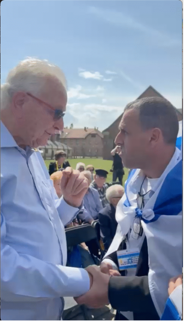 Ninety-three-year-old Naftali Furst, a Holocaust survivor from Haifa, recently met again with Eli Sharabi, a former Hamas hostage from Kibbutz Be’eri, nearly a year after the two furst walked side by side during the March of the Living at the Auschwitz-Birkenau death camp in Poland.