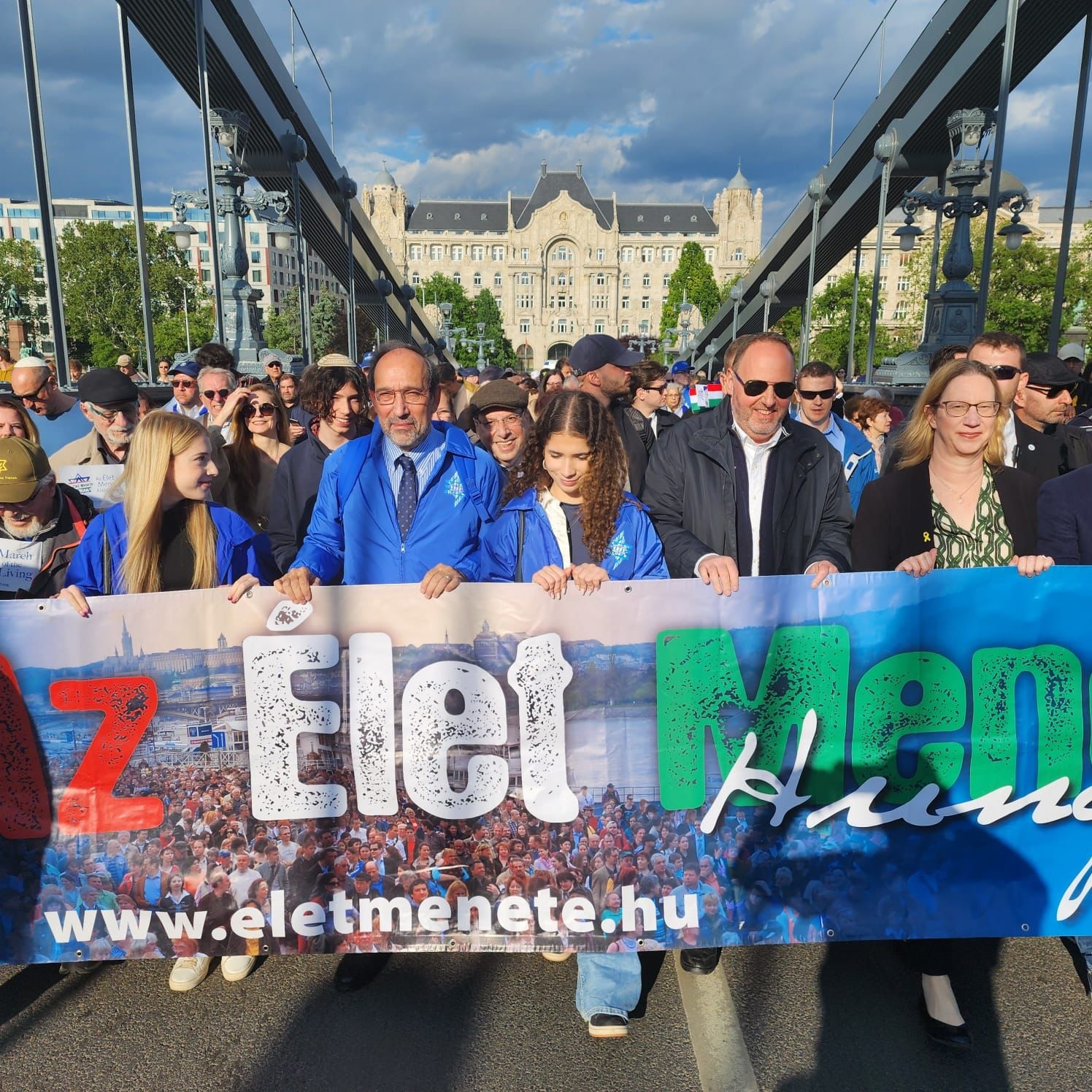 “I was two years old when I arrived with my mother, brothers, and sisters—fatherless and orphaned from my extended family who perished in the crematoria—after a death march from Vienna to Mauthausen. There were 130 people in our large and illustrious family, and only 10 of us survived. The March of the Living in Hungary, as in every place around the world, symbolizes the resilient spirit and the enduring strength of the Jewish spirit, despite all the suffering. Despite everything, we will march with pride, in every place, carrying with honor our identity as members of the eternal nation”.