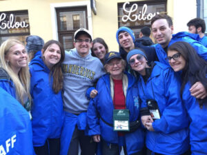 Each time Adele returned to Poland on the March of the Living, she took her young participants to her hometown of Lodz. She shared with them stories of her wonderful life in Lodz before the war, eagerly showing the students the house she lived in and where she played as a child.