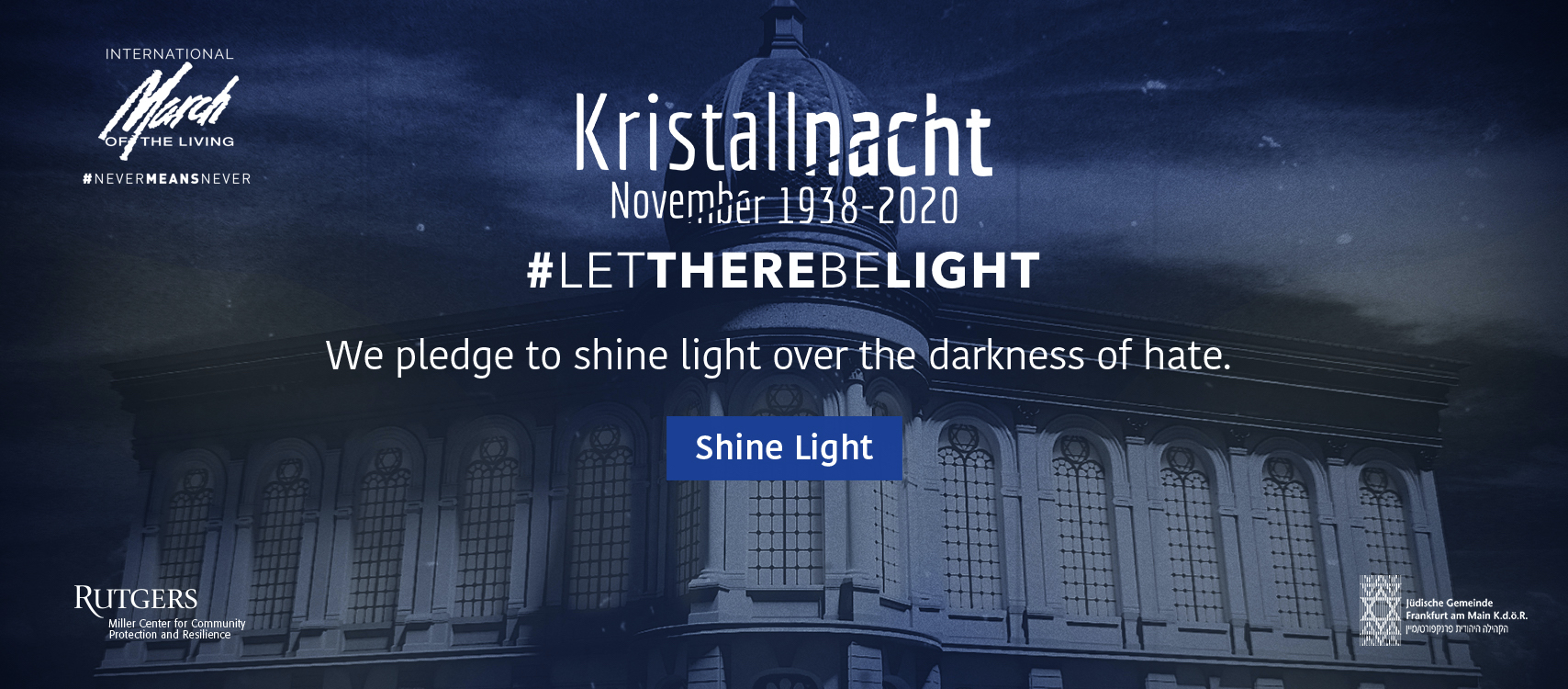 In honor of the 82nd anniversary of Kristallnacht – The Night of Broken Glass, on November 9th, 2020, the International March of the Living aired our 2020 Kristallnacht Commemoration “Let There Be Light”, in partnership with The Miller Center for Community Protection and Resilience at Rutgers University, and the Jüdischen Gemeinde Frankfurt.
